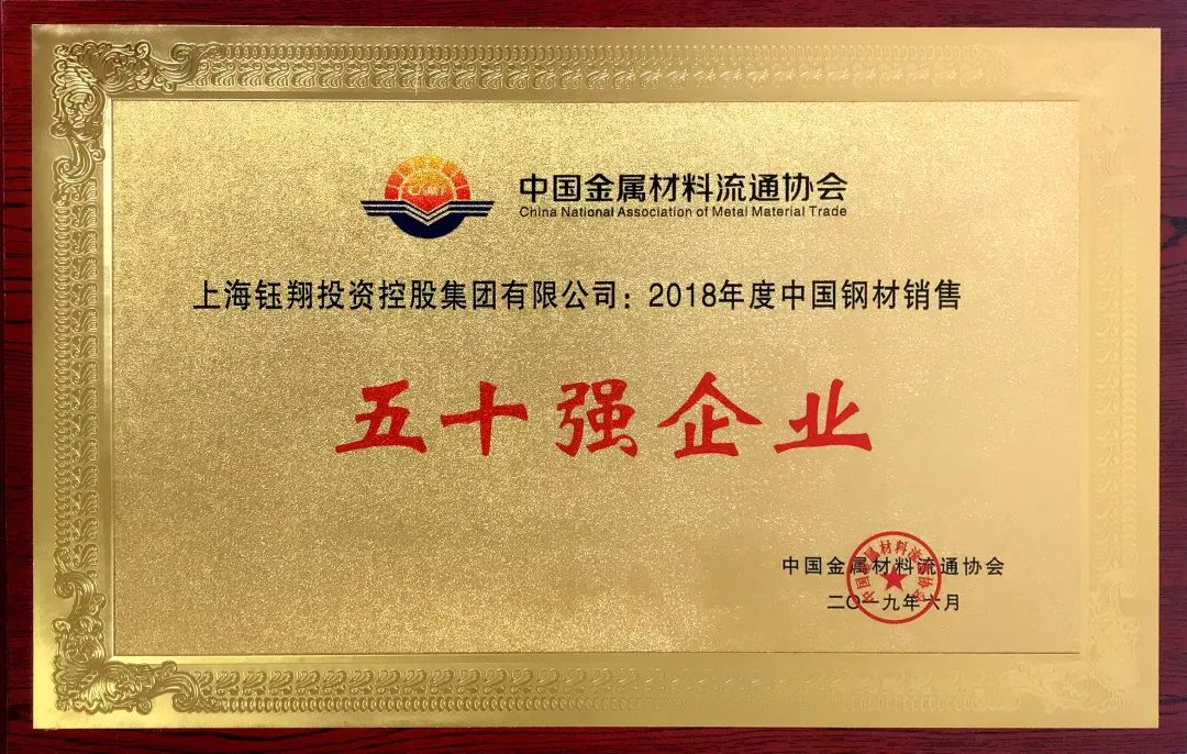 會(huì)上頒發(fā)了一系列鋼鐵行業(yè)內(nèi)的年度大獎(jiǎng),鈺翔控股集團(tuán)憑借在鋼鐵智慧供應(yīng)鏈領(lǐng)域取得的成果、實(shí)力和口碑榮獲中國(guó)金屬材料流通協(xié)會(huì)2018年度中國(guó)鋼材銷售50強(qiáng)、2018年度中國(guó)鋼鐵供應(yīng)鏈建設(shè)示范企業(yè)兩項(xiàng)殊榮。