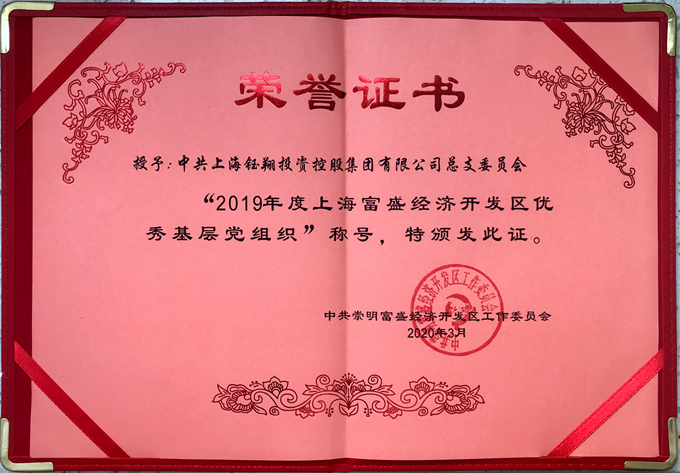 近日,集團(tuán)黨總支被評(píng)為2019年度崇明富盛經(jīng)濟(jì)開(kāi)發(fā)區(qū)優(yōu)秀基層黨組織。